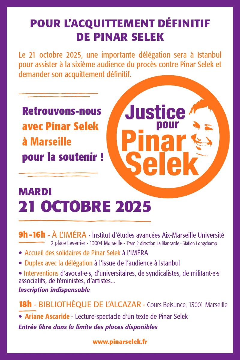Le 21 octobre 2025, une importante délégation sera à Istanbul pour assister à la sixième audience du procès contre Pinar Selek et demander son acquittement définitif.